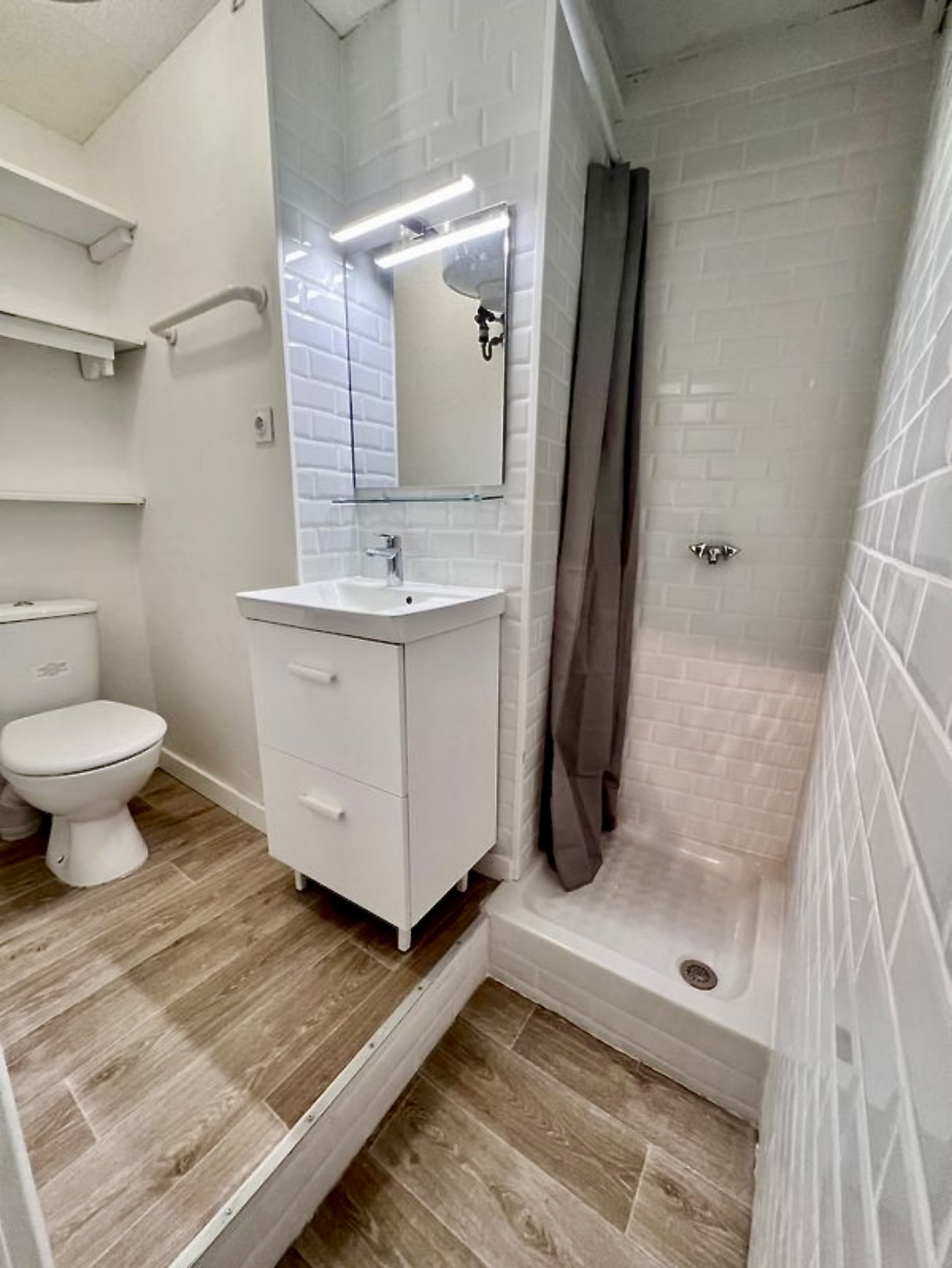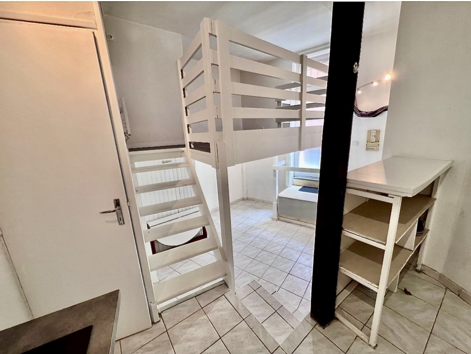 Ce studio actuellement loué est composé d'une pièce principale avec mezzanine morderne, d'une salle d'eau moderne avec douche italienne, d'une kitchenette entièrement équipée, du double vitrage et de l'électricité aux normes.