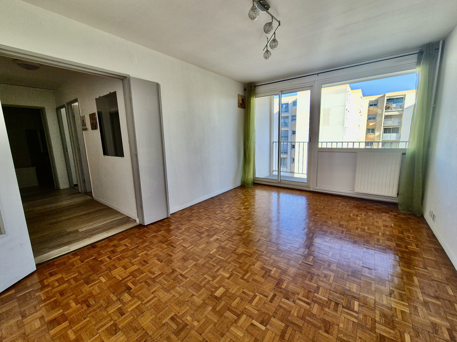 Cet appartement en bon état général se compose d'un beau séjour lumineux avec terrasse donnant sur des espaces verts, d'une cuisine US équipée, d'une chambre avec placard de rangement, et d'un salle de bain avec WC.